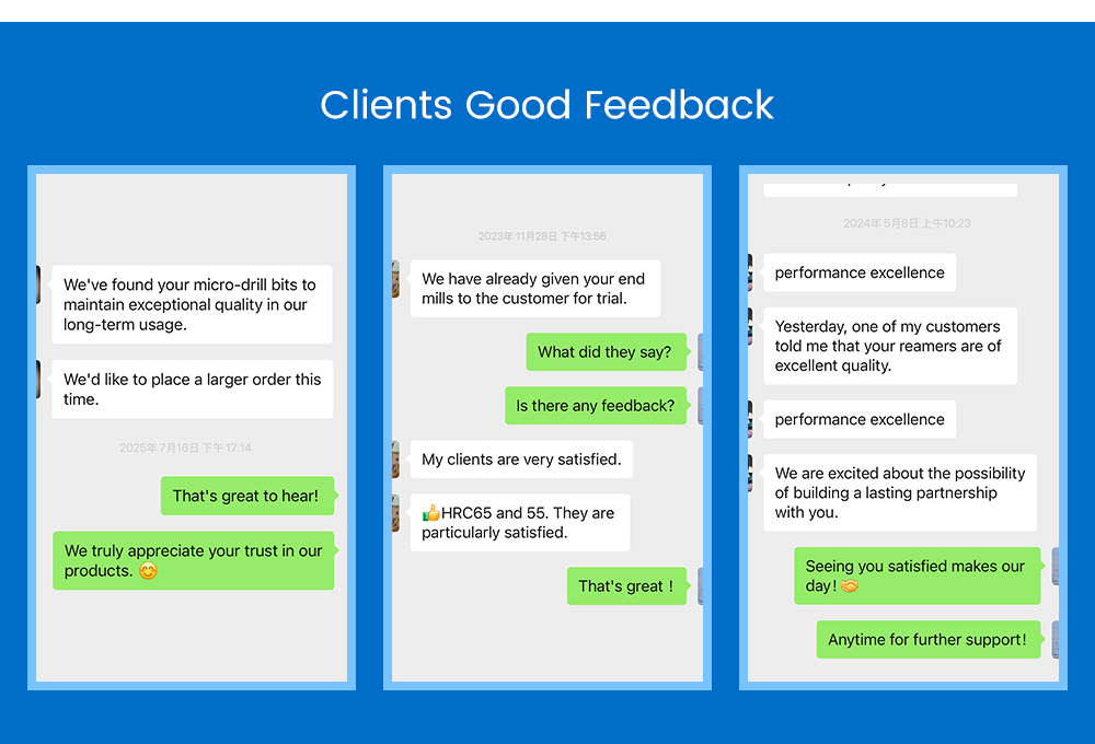 • Para sa pinakamainam na pagganap, inirerekomenda namin ang paggamit ng mataas na bilis ng spindle, katamtaman hanggang mataas na rate ng feed, at naaangkop na coolant o air blast upang mapanatiling malinis at malamig ang cutting zone. Iwasan ang tirahan o mga low-feed pass, na maaaring magdulot ng pagtigas ng trabaho o pahid. Makipag-ugnayan sa aming technical team para sa customized na mga rekomendasyon sa cutting parameter batay sa iyong partikular na makina at application.